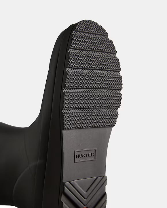 Para asegurarse de que sus botas duren el máximo tiempo posible en buenas condiciones, páseles un trapo y déjelas secar al aire, lejos de la luz del sol directa o de fuentes de calor artificial. Utilice únicamente agua jabonosa fría para limpiar sus botas. No utilice disolventes. No guarde las botas estando húmedas, dobladas o arrugadas. Guárdelas en un lugar fresco y seco. En algunas ocasiones, puede que vea un polvillo blanco en sus botas de agua de goma Hunter. Esto se produce porque la goma es un producto natural y en determinadas condiciones, es posible que suban a la superficie partículas indisolubles. Este es un proceso habitual, característico de la alta calidad de la goma natural y nada de lo que deba preocuparse. No afectará ni al rendimiento ni a la durabilidad de sus botas.