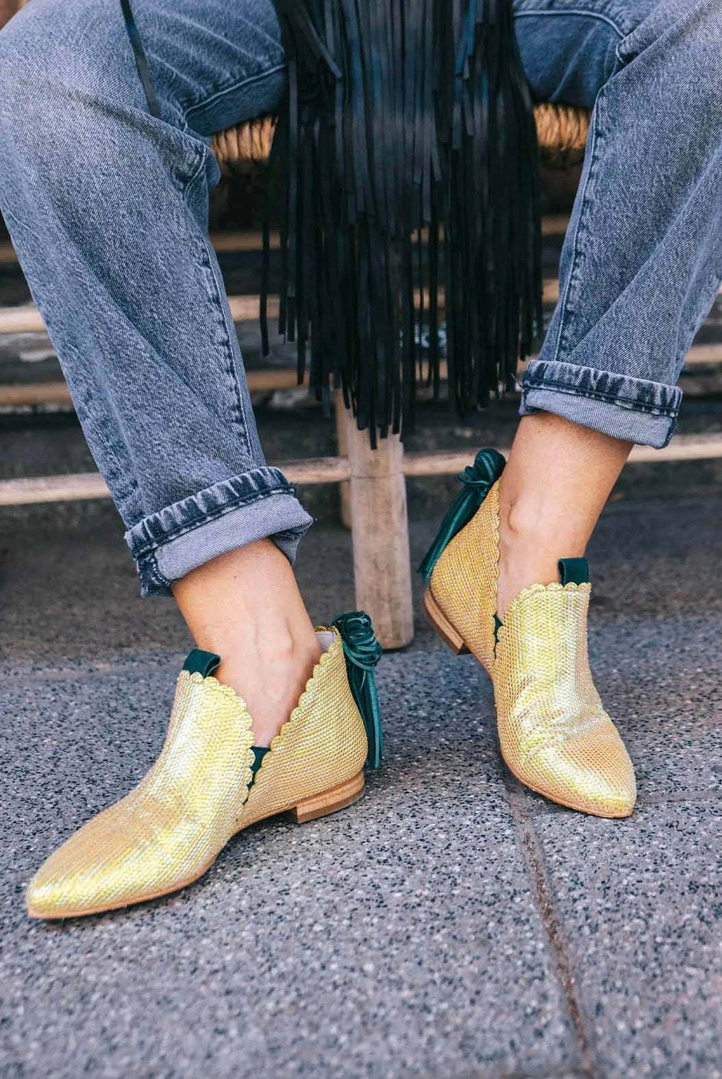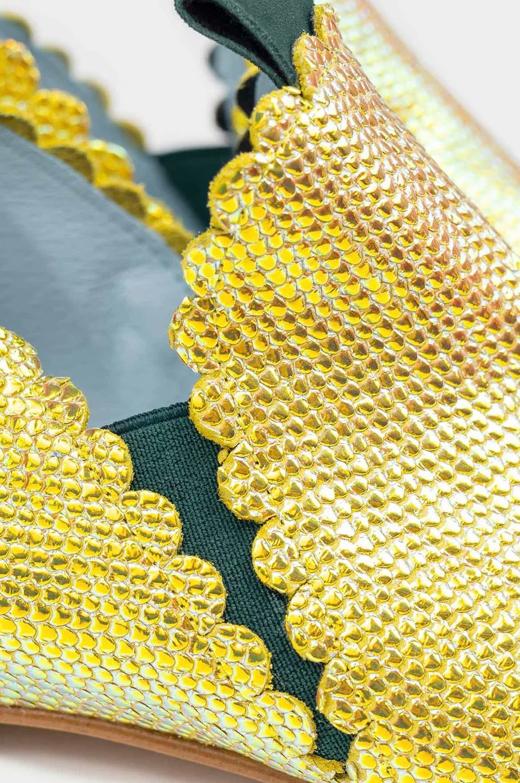 Lo que más nos gusta: el dorado tan especial, con reflejos lima. 100% único.