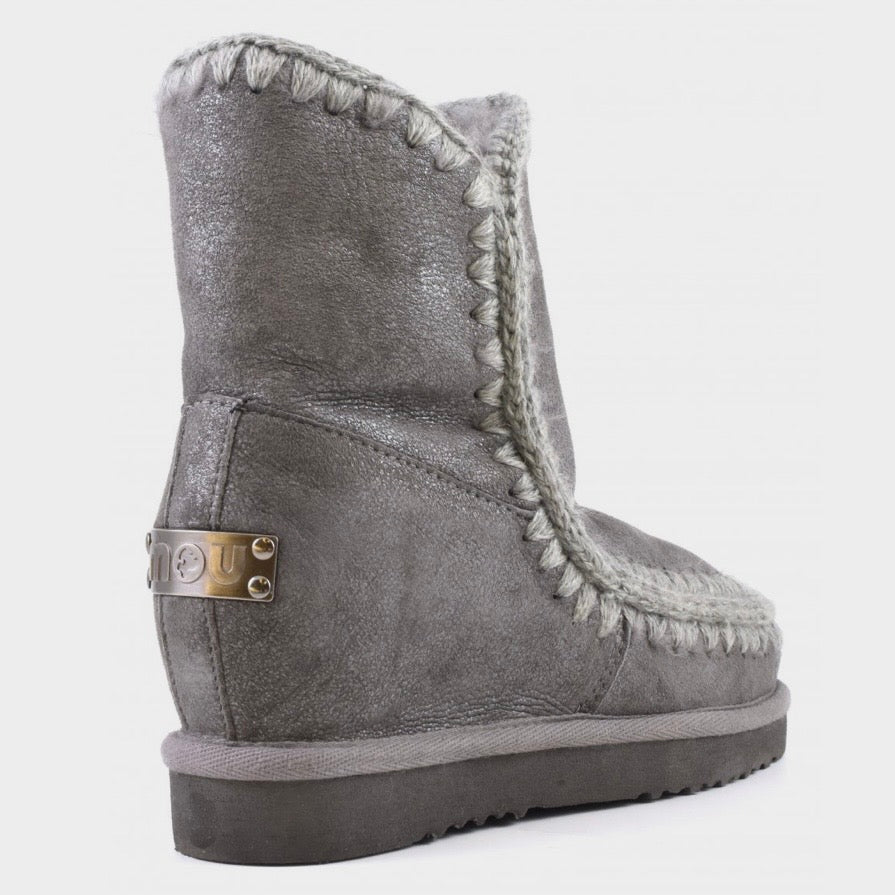 Una pieza esencial en el vestuario invernal de mou, las eskimo short de cuña representan lo mejor del icono mou con un tacón oculto de 5 cm y una forma más estilizada. Increíblemente cómodo y favorecedor, este modelo está elaborado con suave y genuina piel de oveja, con las características costuras de lana de la marca mou cosidas a mano, un soporte de apoyo para el talón y una resistente suela de EVA. Se ofrece en una amplia gama de acabado de cuero especiales y clásicos. Altura 23 cm. Regular fit.