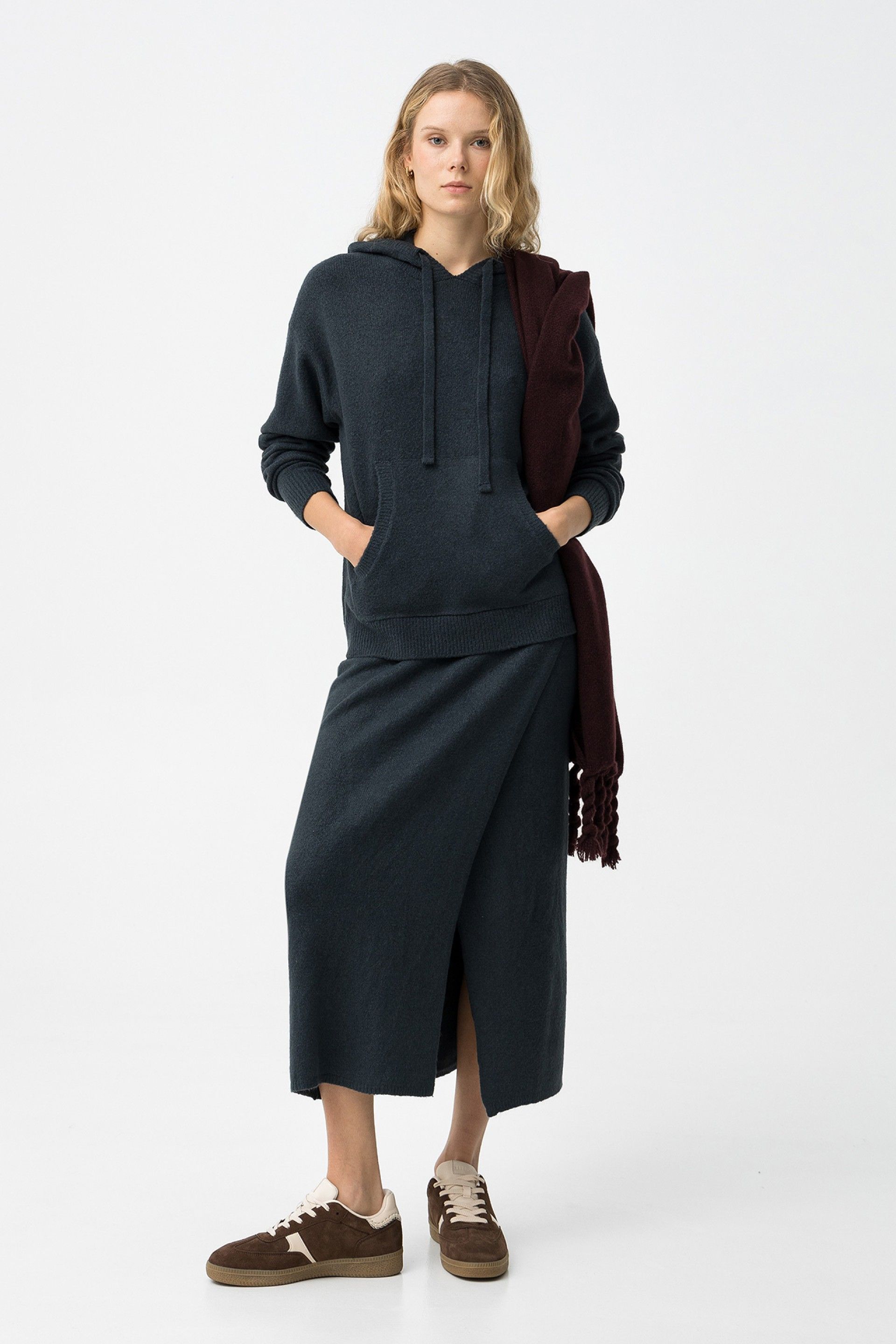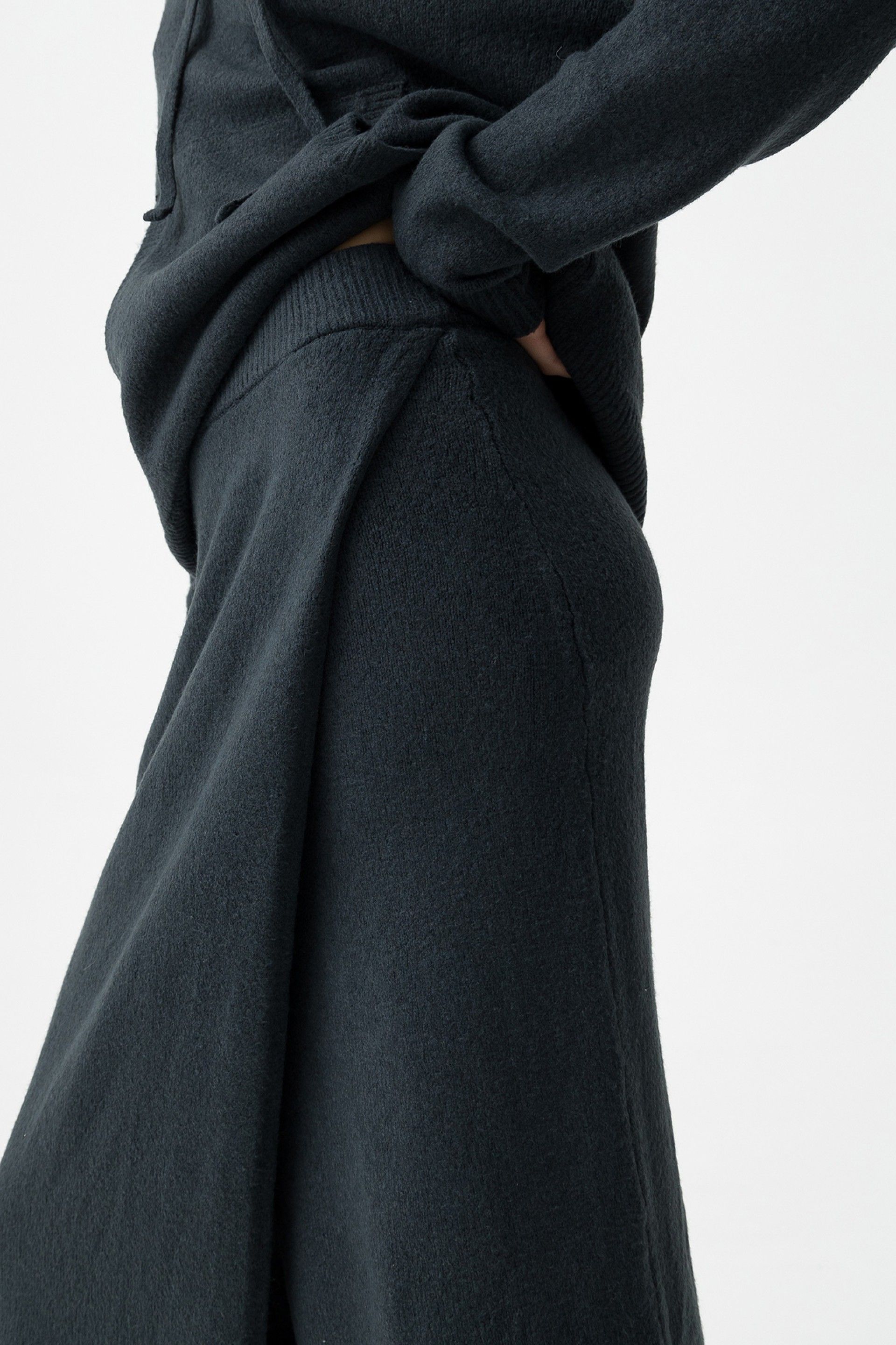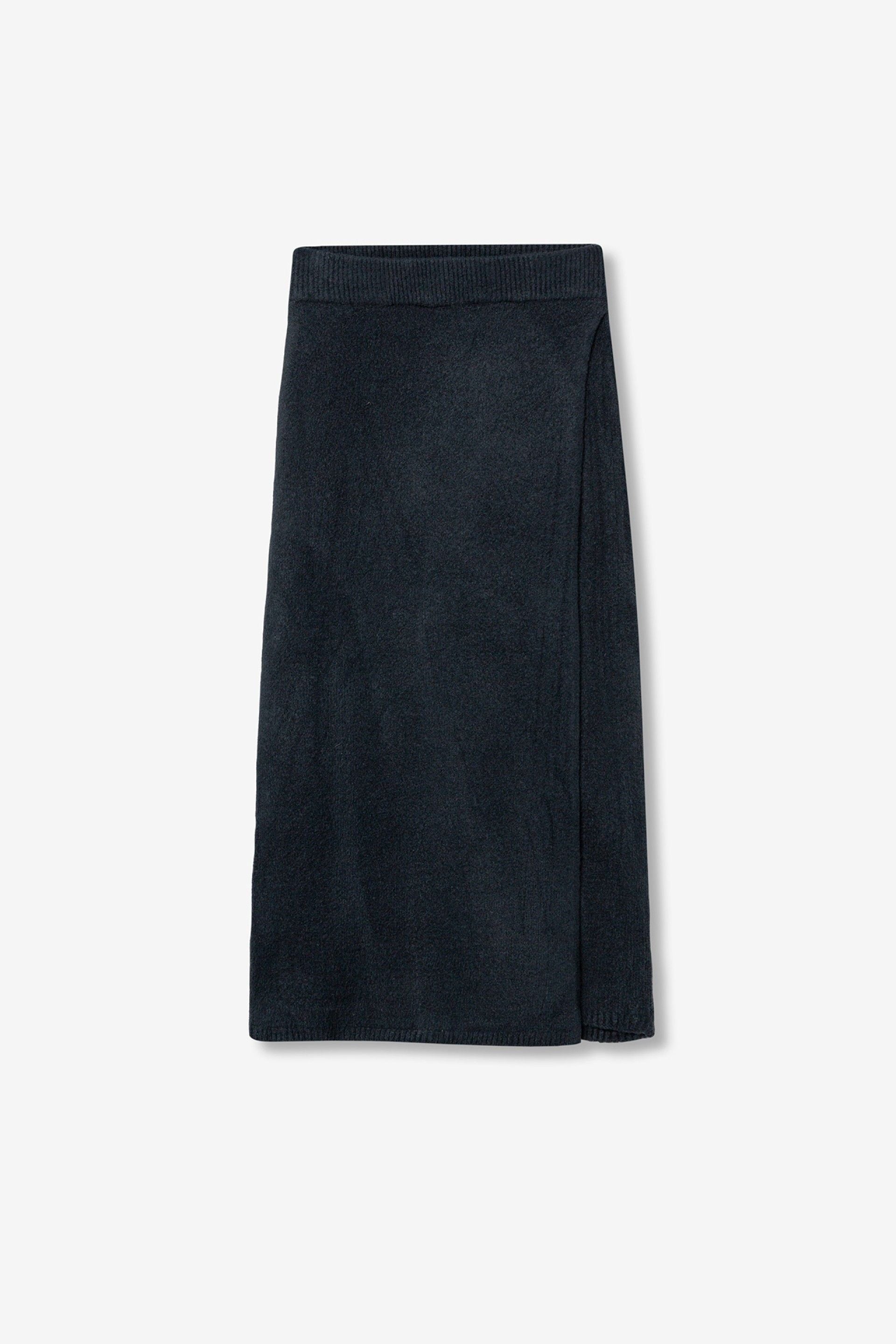 Falda midi de punto con superposición frontal y cintura elástica de canalé.