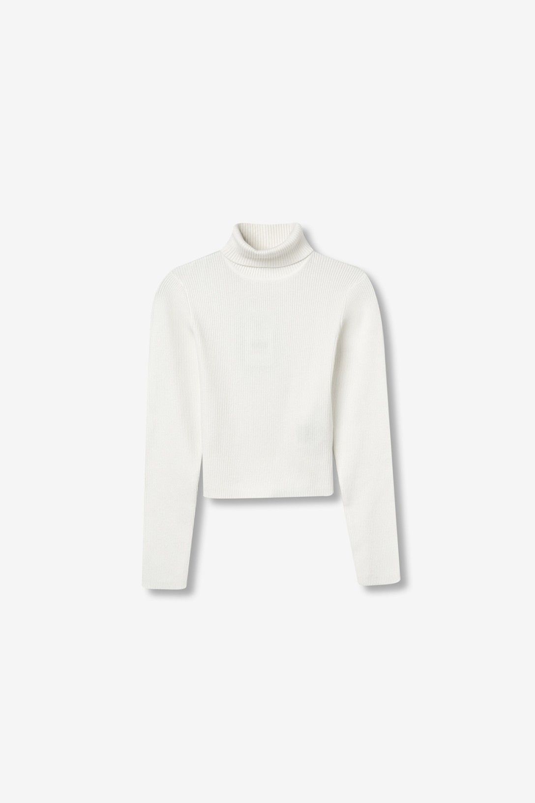 Jersey de manga larga en punto canalé. Super slim fit y cropped. Cuello alto. Puños y bajo en rib.